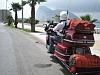 una Gold Wing), sulla strada strettissima ormai a senso unico