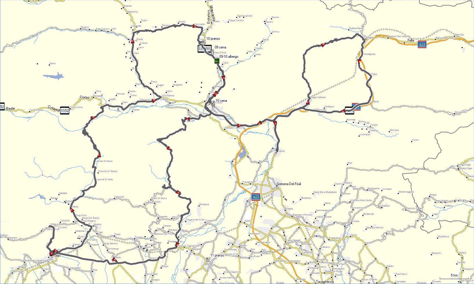 Ancora verso nord, fino a Comeglians, da dove saliamo verso la Sella Valcada (m 959), vicino al monte Zoncolan, discesa la quale, presso Sutrio, finalmente giungiamo alla Trattoria Alle Trote.