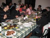 La cena scorre in allegria, tra cibo, saluti e scherzi.